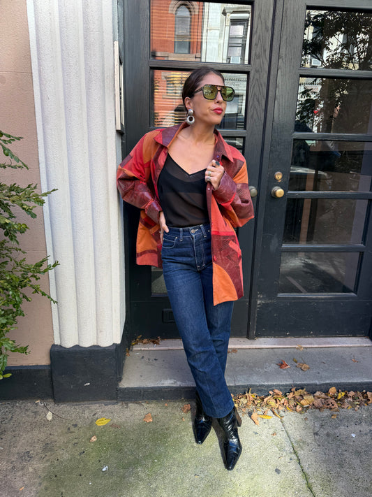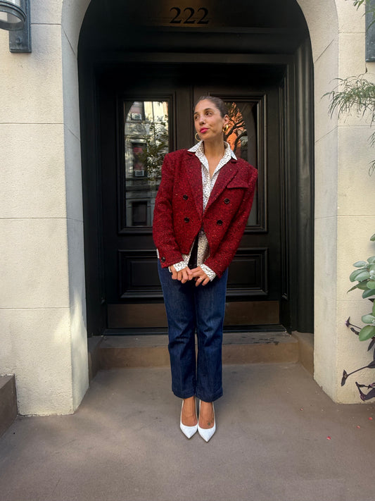 80s Guy Laroche Red Herringbone Tweed Jacket