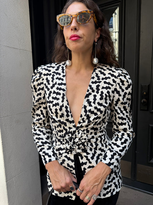 90s Louis Feraud Metallic Evening Blazer - Black & Gold Baroque Print
