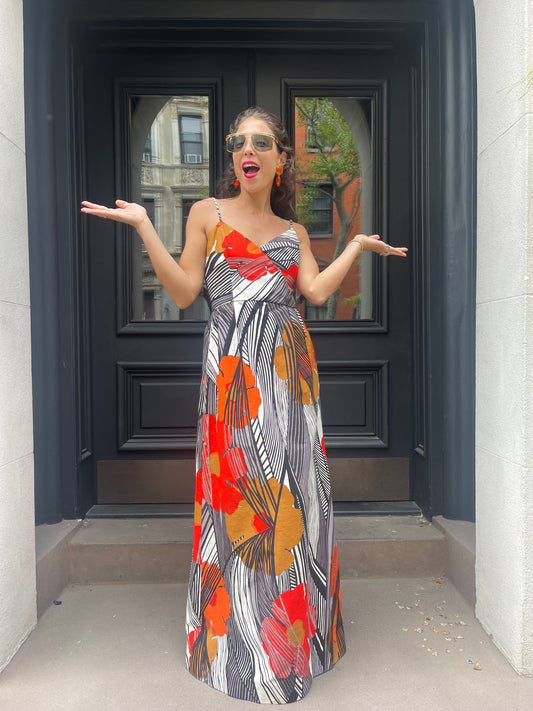 Sold out70s floral maxi w. bolero, xs/sm