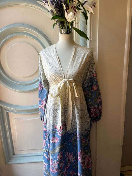 70s Blue, White & Pink Floral Maxi, Medium