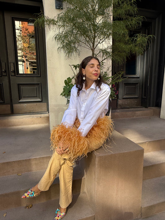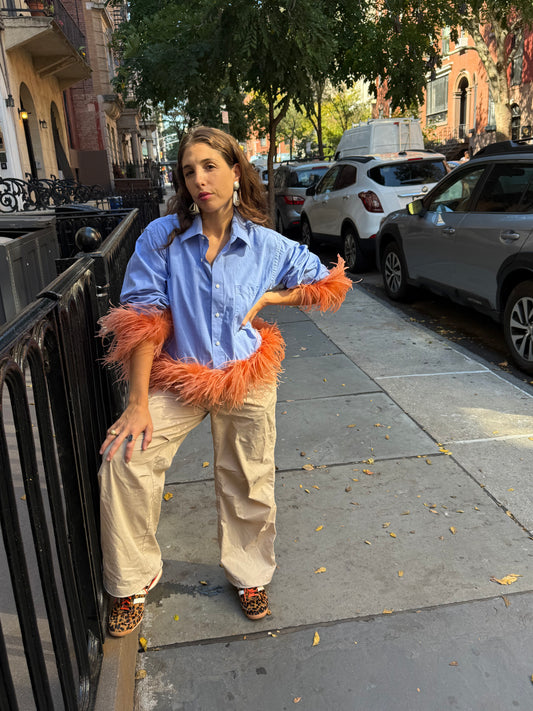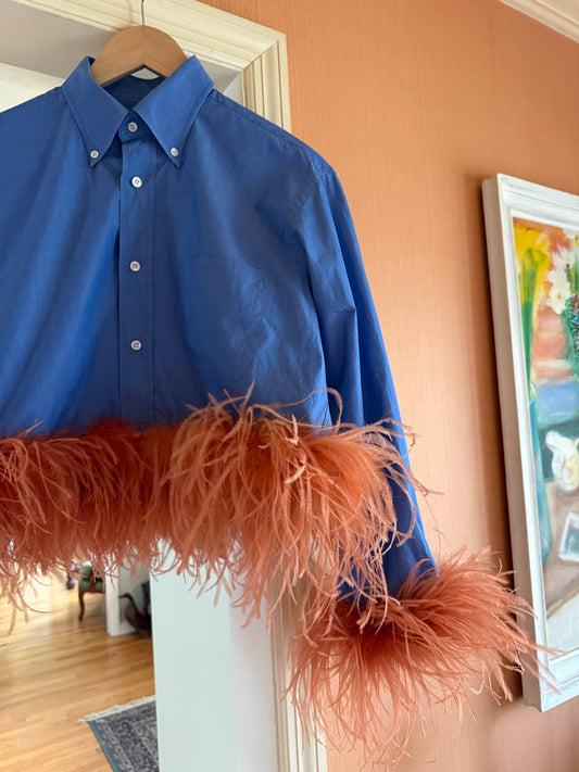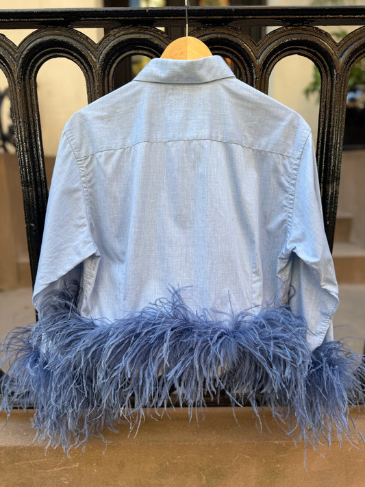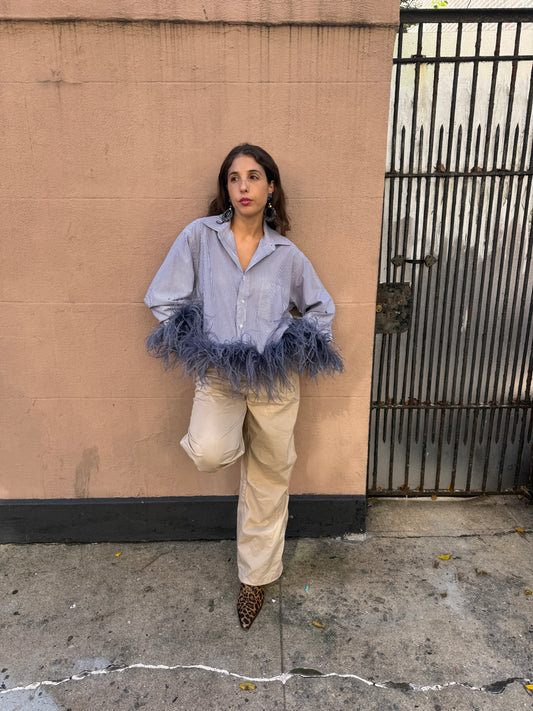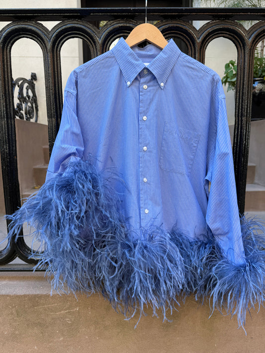 Colette Feather Shirt - Blue Pinstripe & Denim
