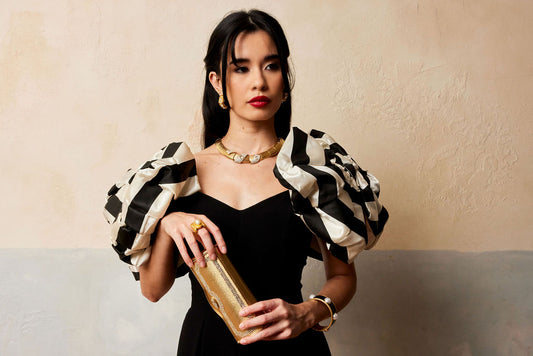 80s RARE Victor Costa black striped bow shoulder gown
