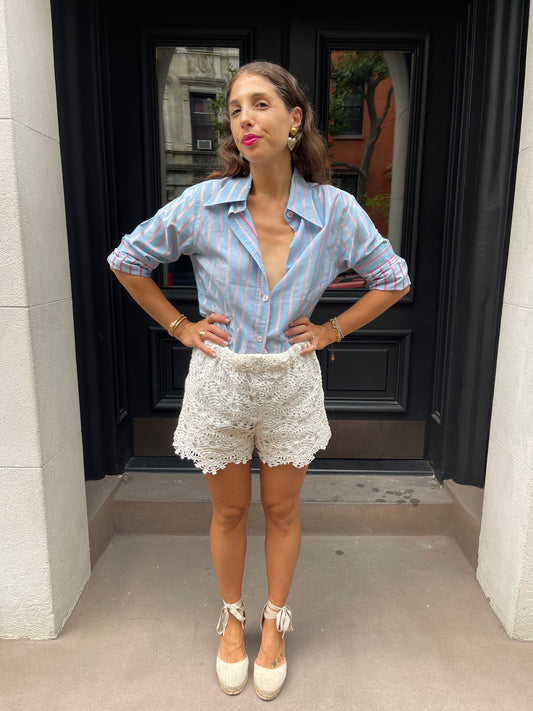 Ivory Up-cycled Crochet Shorts