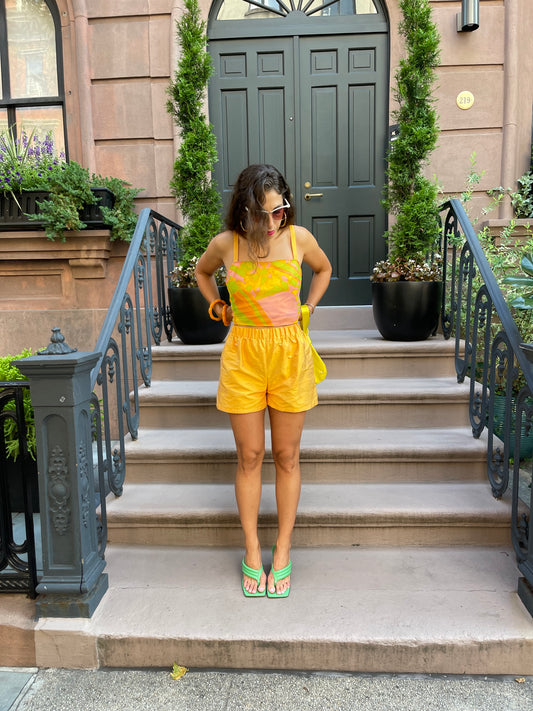 Marigold raw silk & chiffon short & tank set