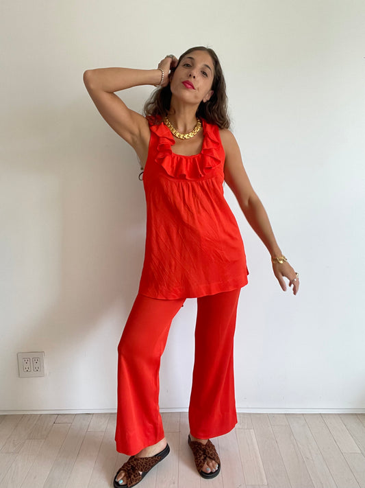 70s red orange 2 piece set, 26" waist