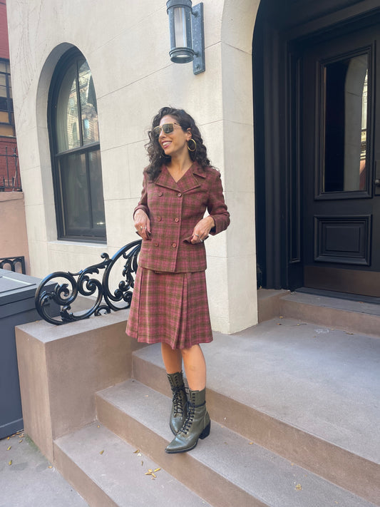 50s/60s Pendleton plaid berry skirt suit