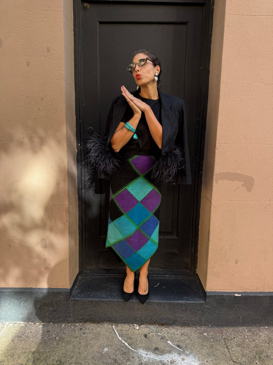 70s Wool Argyle Maxi Skirt with Asymmetrical Hem