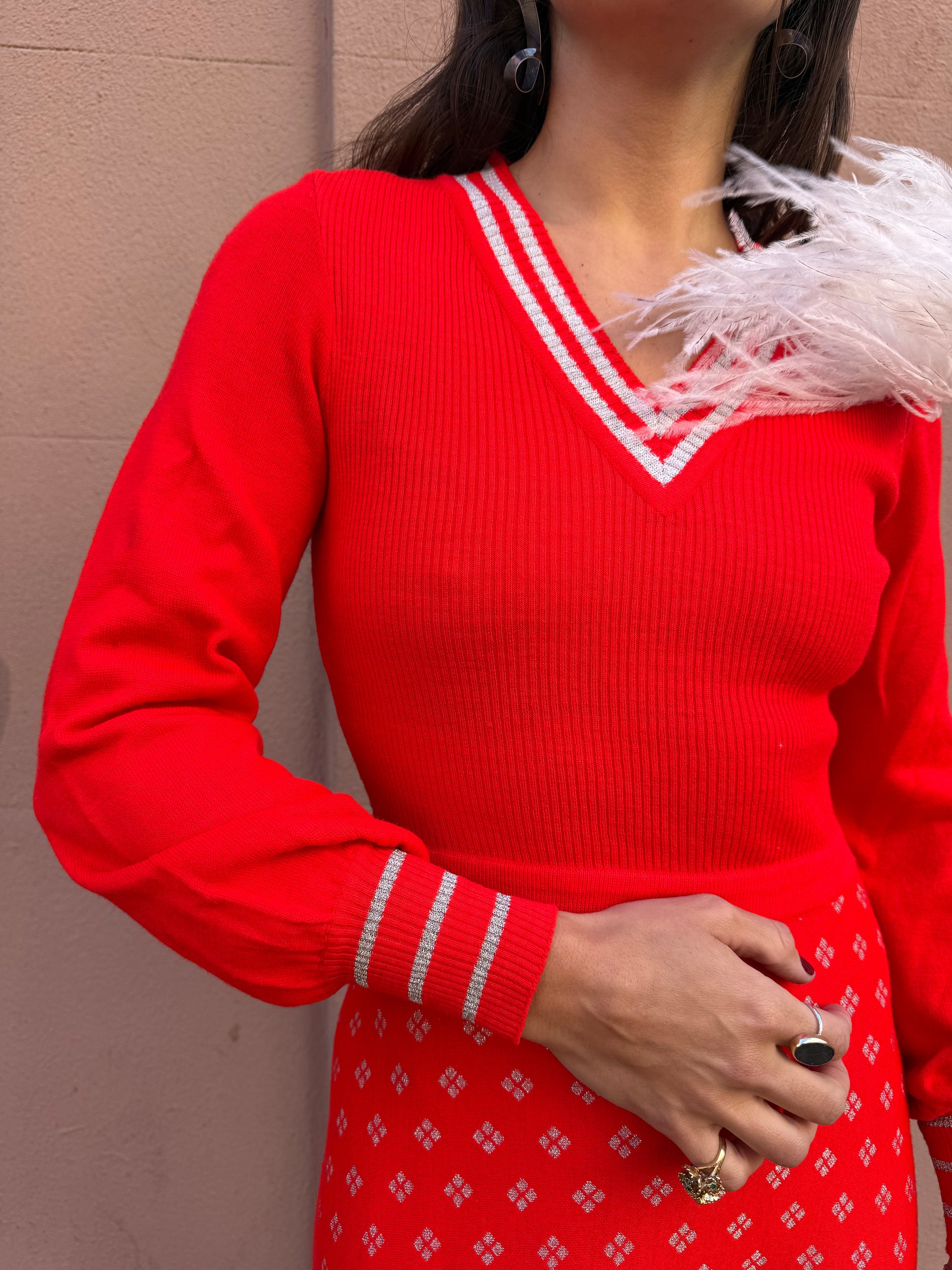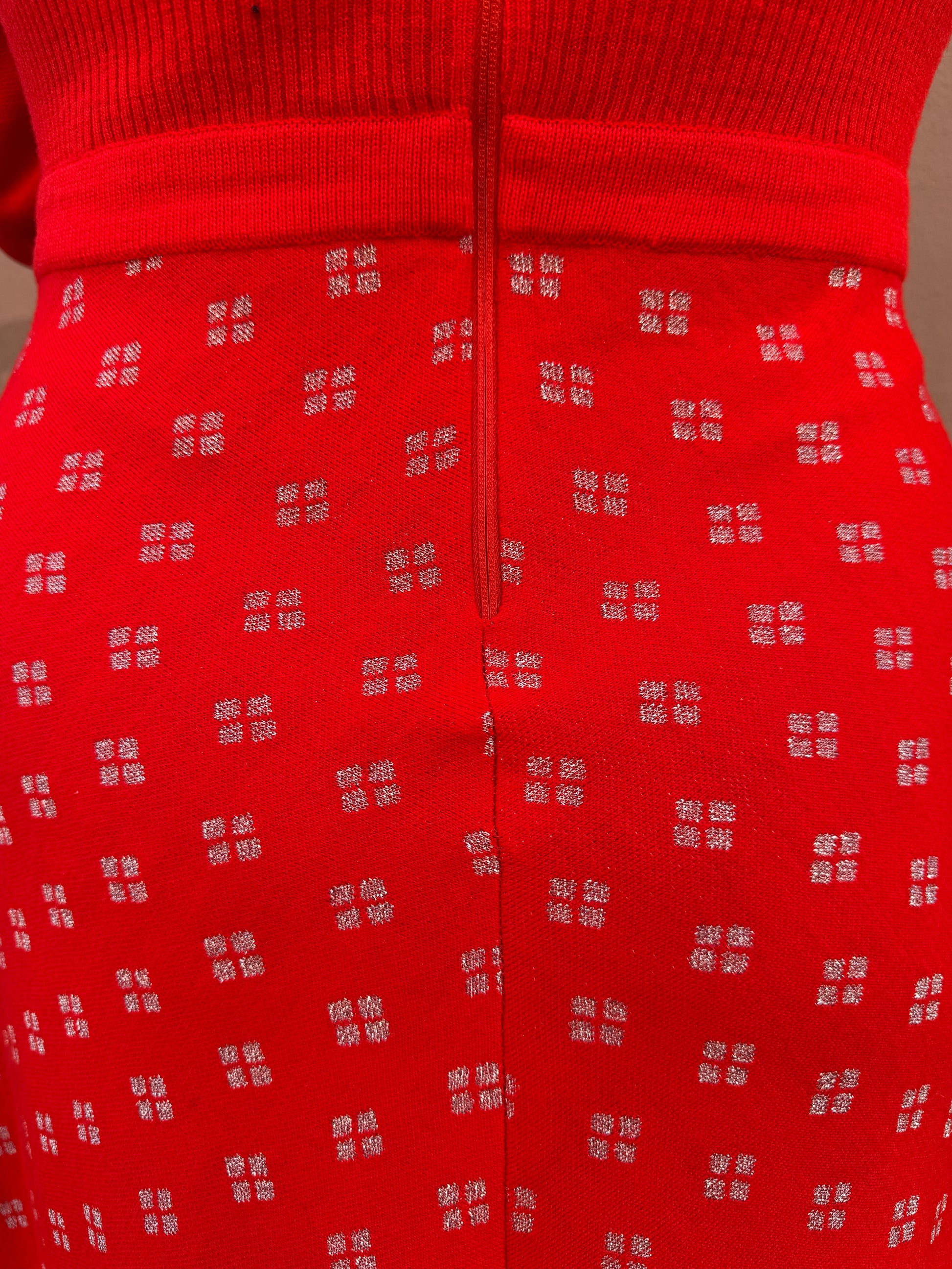 70s Red Knit Maxi Dress w silver detail