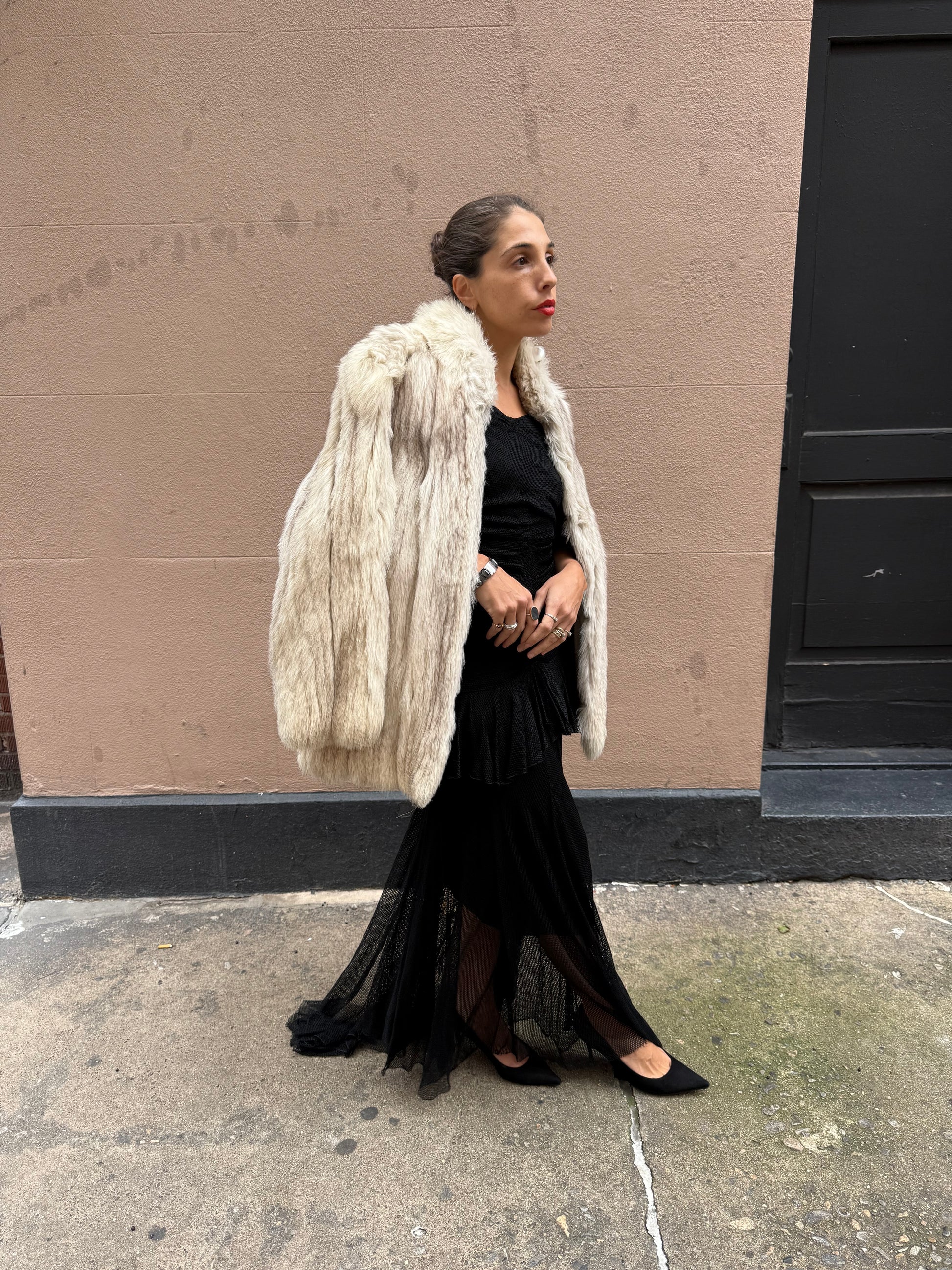 1980s Blue Fox Fur Coat, a plush and voluminous piece that radiates vintage sophistication. This coat is a winter wardrobe icon—perfect for collectors, stylists, or anyone craving a touch of old-school Hollywood glamour.