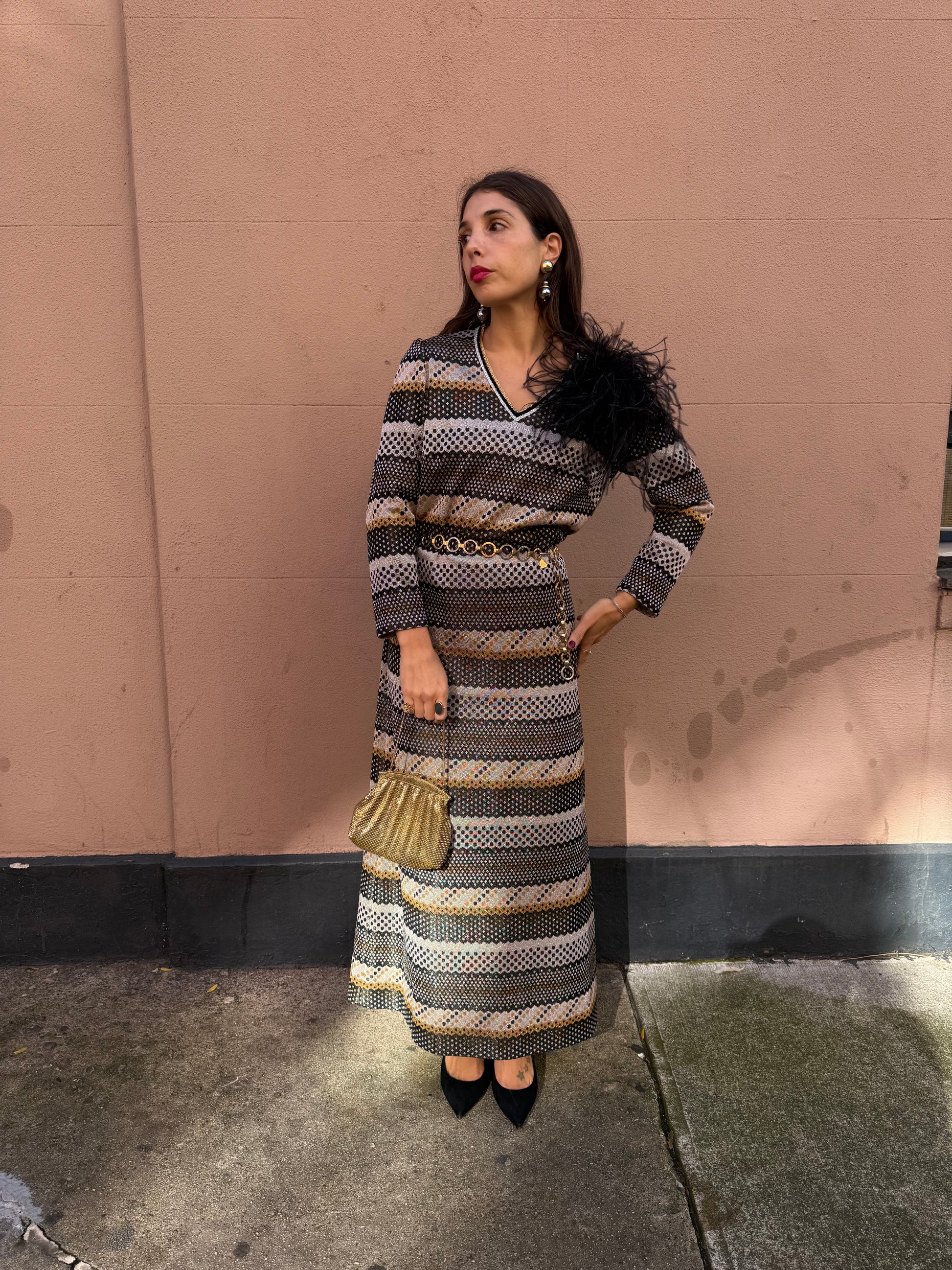 Iconic Whiting & Davis gold chain mail handbag, crafted from signature metallic chainmail that glimmers with every movement. Includes mirror & comb. Featuring a structured frame, clasp closure, and a delicate chain strap, this iconic accessory is perfect for evening wear, cocktail parties, or adding vintage sparkle to modern looks.